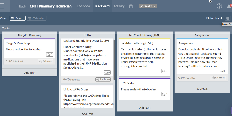 Stafford is just one of many schools and organizations that use Headrush task boards to navigate independent paths of study for students. Students can demonstrate their understanding of custom competencies and earn credits towards certifications through the Headrush Learning Platform, as seen in the following task boards.