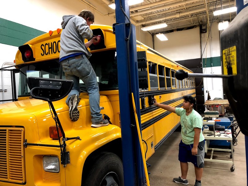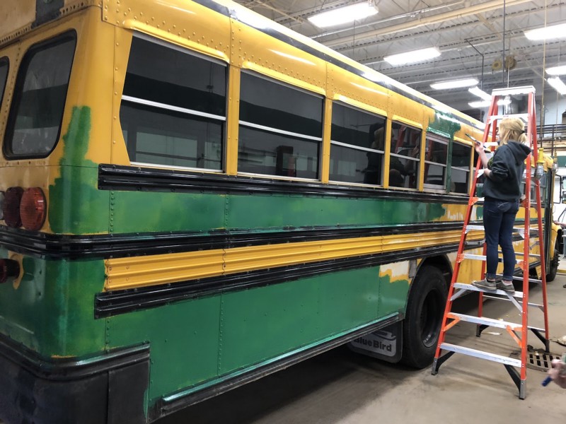 Yep. Last year we we used it like a normal bus for the first half of the year just because we wanted to get out and about and we knew we’d be trapped in the winter. We started working on the lab in late November with the auto shop teacher. We were able to pull the bus into the auto shop and we spent the entire winter removing the back third of the seats, mounting cabinets, fixing rust so that the bus would pass inspection, sanding the whole thing, removing all the reflectors, painting the thing by hand because it couldn’t be yellow anymore. We ended up making an emergency run to Rhinelander to get the license plates for it so they could present the new mobile lab at the ISN conference so they could present the lab to educators from across the country. I mean, it was an absolutely amazing experience watching this project from beginning to completion.