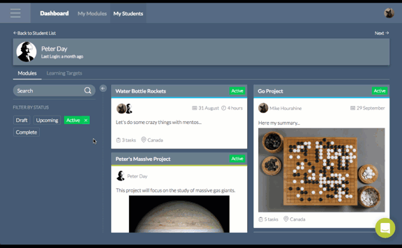 Transforming a teacher-led classroom to a student-led classroom doesn’t happen overnight. So why not customize project leadership to best fit your community? Project-based learning can be co-designed by both teachers and students, just as projects in any workplace are often co-designed by employer and employee. Our software allows for flexible management of project work so that teacher-led, student-led or co-designed projects are easy to digitally develop and track. Even better, student achievement tracking is made asynchronous by HEADRUSH, which allows students to be in the driver’s seat of their own learning, while teachers serve as their supportive passengers. As students co-manage and co-track their own progress with their project advisors, they develop a genuine understanding of their own skill development and overall learning target achievement. By design, this allows the transition from a teacher-led to student-led classroom happen more naturally, and for each community to find the best balance when enabling deeper learning depending on their personal needs.
